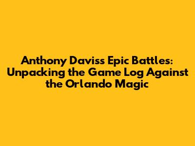 Anthony Davis Dominates: Game Log Vs. Orlando Magic