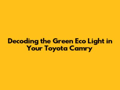 Decoding The Green Eco Light In Your Toyota Camry
