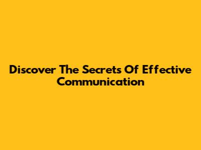 Discover The Secrets Of Effective Communication