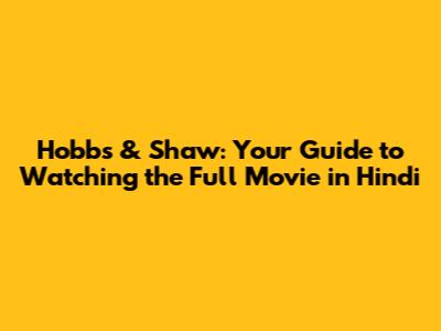 Q: Is Hobbs & Shaw available in Hindi on Netflix? A: Availability varies by region. Check the Netflix library in your area to see if Hobbs & Shaw is available with Hindi audio.
