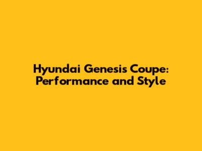 Hyundai Genesis Coupe: Performance And Style
