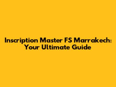 Inscription Master FS Marrakech: A Comprehensive Guide