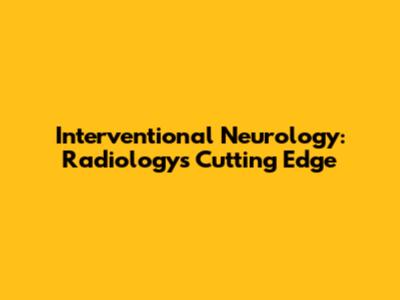 Interventional Neurology: Radiology's Cutting Edge