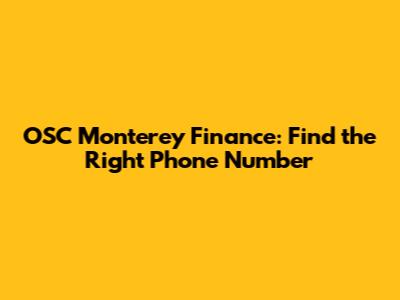 OSC Monterey Finance: Find The Right Phone Number