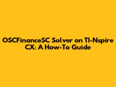 OSCFinanceSC Solver On TI-Nspire CX: A How-To Guide