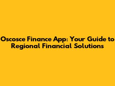 Oscosce Finance App: Your Guide To Regional Financial Solutions