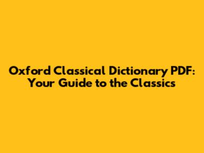Oxford Classical Dictionary PDF: Your Guide To The Classics
