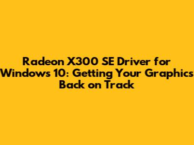 Hey guys! So, you've booted up your Windows 10 machine and suddenly, your display is looking a bit... off? Maybe it's laggy, or perhaps the resolution is all wrong. Chances are, you're dealing with a graphics driver issue, and specifically, you might be hunting for the Radeon X300 SE driver for Windows 10. This little guy, while a bit older, can still be a workhorse if you get the right software for it. Finding the correct drivers can sometimes feel like a treasure hunt, but don't worry, we're here to guide you through it. This article will break down exactly where to look, what to do, and how to get your graphics card performing like it should on your modern Windows 10 setup. We'll cover everything from identifying your card to installing the drivers, making sure you can get back to your games, your work, or just enjoying a crisp, clear display.