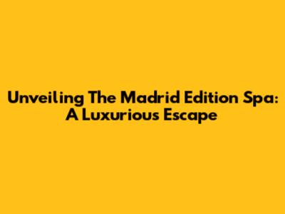 Unveiling The Madrid Edition Spa: A Luxurious Escape